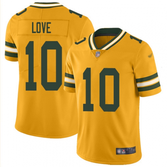 Men's Green Bay Packers #10 Jordan Love Gold Stitched NFL Limited Inverted Legend Jersey