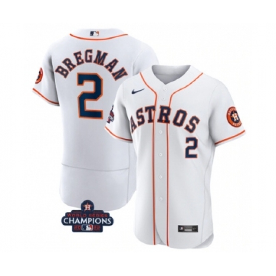 Men's Houston Astros #2 Alex Bregman White 2022 World Series Champions Flex Base Stitched Baseball Jersey