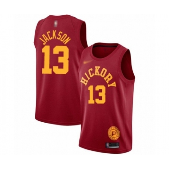 >Men's Indiana Pacers #13 Mark Jackson Authentic Red Hardwood Classics Basketball Jersey