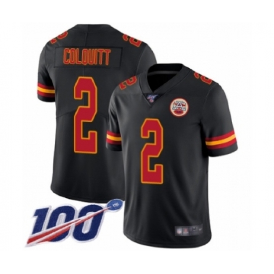 Men's Kansas City Chiefs #2 Dustin Colquitt Limited Black Rush Vapor Untouchable 100th Season Football Jersey