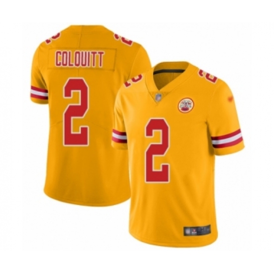 >Men's Kansas City Chiefs #2 Dustin Colquitt Limited Gold Inverted Legend Football Jersey