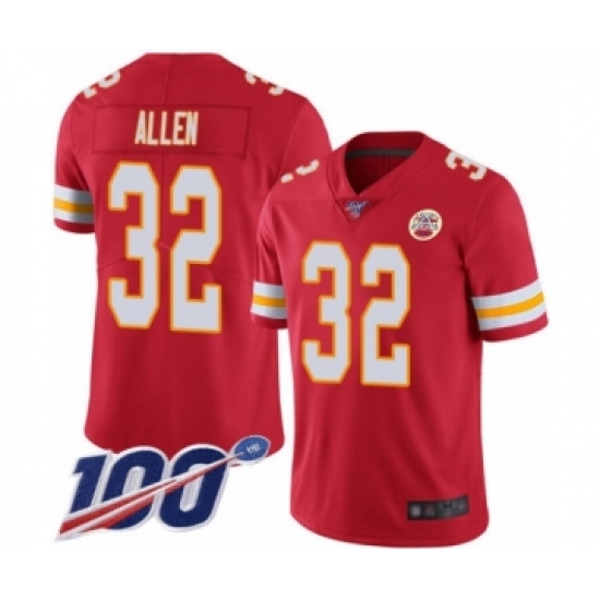 >Men's Kansas City Chiefs #32 Marcus Allen Red Team Color Vapor Untouchable Limited Player 100th Season Football Jersey