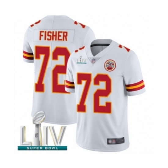 >Men's Kansas City Chiefs #72 Eric Fisher White Vapor Untouchable Limited Player Super Bowl LIV Bound Football Jersey