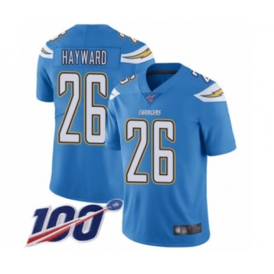 Men's Los Angeles Chargers #26 Casey Hayward Electric Blue Alternate Vapor Untouchable Limited Player 100th Season Football Jersey