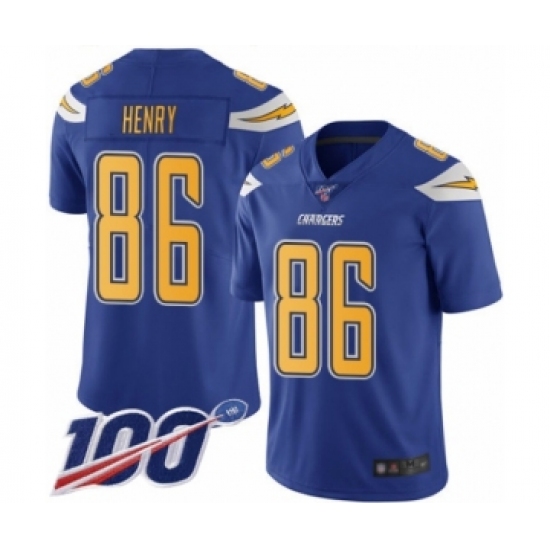 Men's Los Angeles Chargers #86 Hunter Henry Limited Electric Blue Rush Vapor Untouchable 100th Season Football Jersey