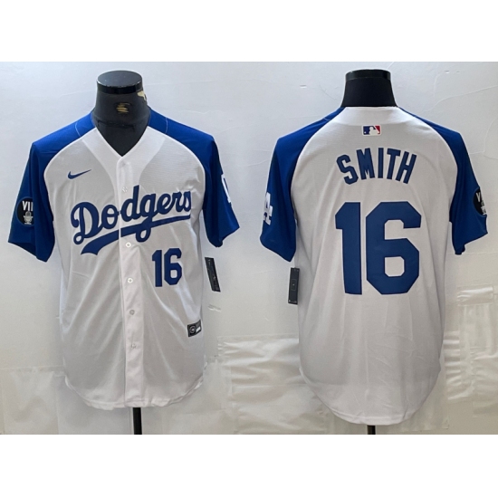 Men's Los Angeles Dodgers #16 Will Smith White Blue Fashion Stitched Cool Base Limited Jersey
