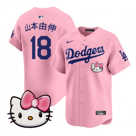 Men's Los Angeles Dodgers #18 山本由伸 Pink 2025 Hello Kitty Vapor Limited Stitched Baseball Jersey