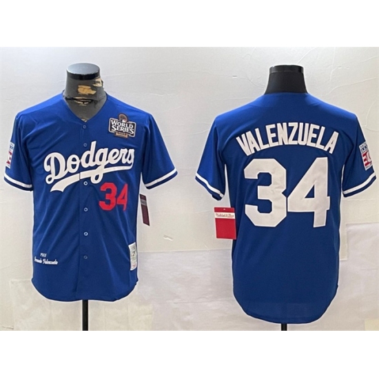 >Men's Los Angeles Dodgers #34 Toro Valenzuela Royal 2024 World Series 1981 Cooperstown Stitched Baseball Jersey
