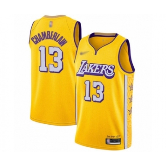 Men's Los Angeles Lakers #13 Wilt Chamberlain Swingman Gold 2019-20 City Edition Basketball Jersey