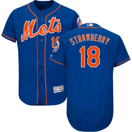 Home>MLB>New York Mets>Darryl Strawberry>Men's Majestic New York Mets #18 Darryl Strawberry Royal Blue Alternate Flex Base Authentic Collection MLB Jersey