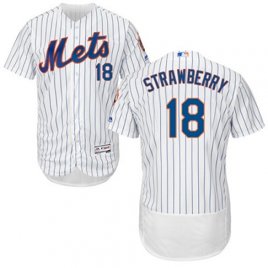 Home>MLB>New York Mets>Darryl Strawberry>Men's Majestic New York Mets #18 Darryl Strawberry White Home Flex Base Authentic Collection MLB Jersey