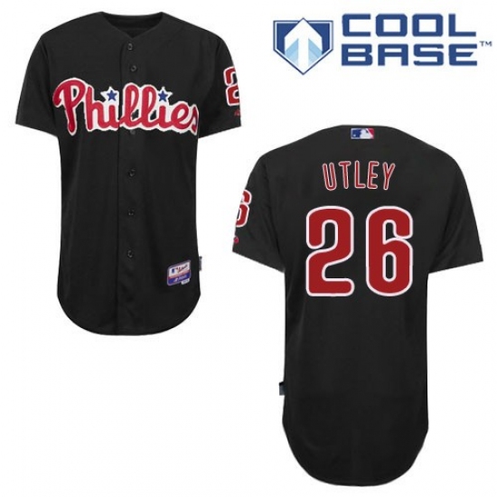 Men's Majestic Philadelphia Phillies #26 Chase Utley Authentic Black Cool Base MLB Jersey