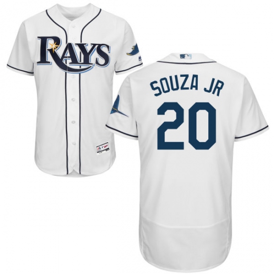 Home>MLB>Tampa Bay Rays>Steven Souza>Men's Majestic Tampa Bay Rays #20 Steven Souza Home White Flexbase Authentic Collection MLB Jersey