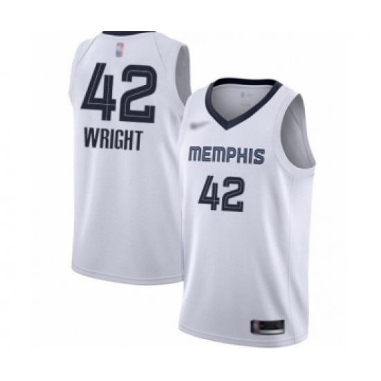 Men's Memphis Grizzlies #42 Lorenzen Wright Authentic White Finished Basketball Jersey - Association Edition
