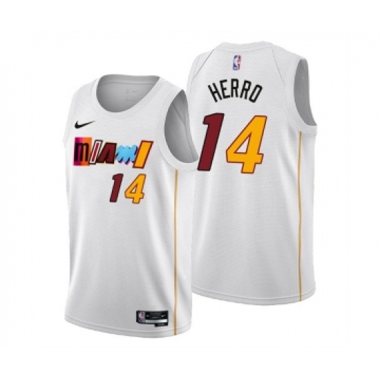 Men's Miami Heat #14 Tyler Herro 2022-23 White City Edition Stitched Jersey