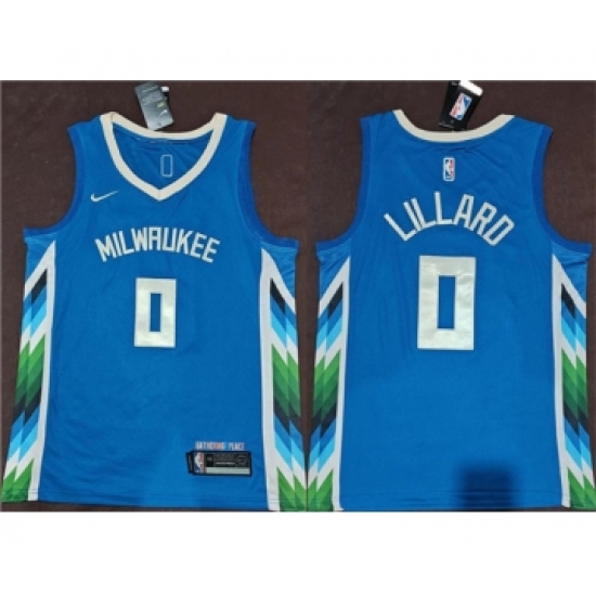 Men's Milwaukee Bucks #0 Damian Lillard Blue 2022-23 City Edition Stitched Basketball Jersey