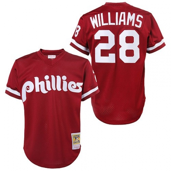 Men's Mitchell and Ness 1991 Philadelphia Phillies #28 Mitch Williams Authentic Red Throwback MLB Jersey