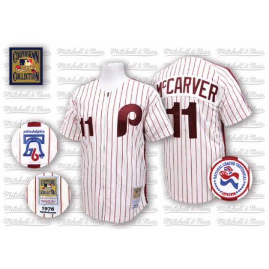 Men's Mitchell and Ness Philadelphia Phillies #11 Tim McCarver Replica White/Red Strip Throwback MLB Jersey