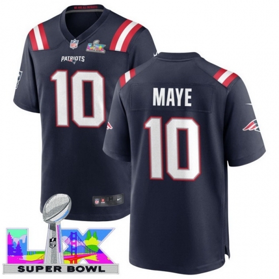 Men's New England Patriots #10 Drake Maye Blue 2025 2026 Super Bowl LX F U S E Stitched Jersey