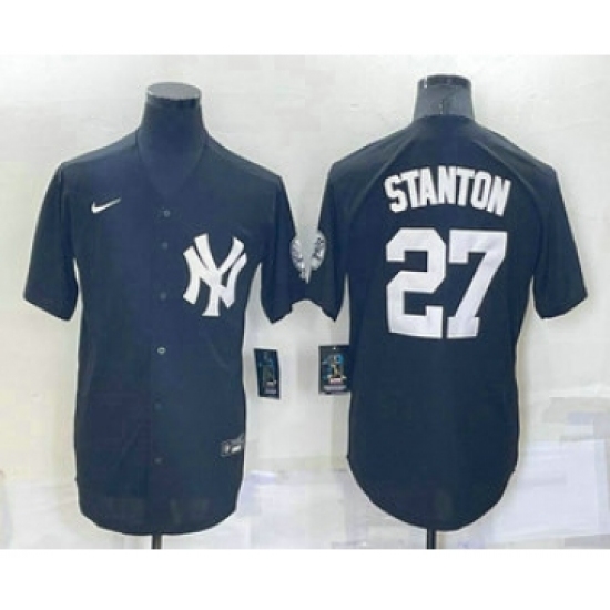 >Men's New York Yankees #27 Giancarlo Stanton Black Stitched Nike Cool Base Throwback Jersey