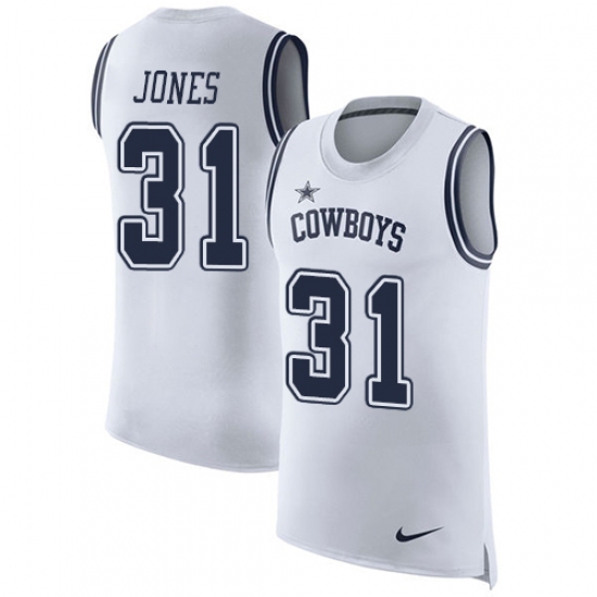 Men's Nike Dallas Cowboys #31 Byron Jones Limited White Rush Player Name & Number Tank Top NFL Jersey