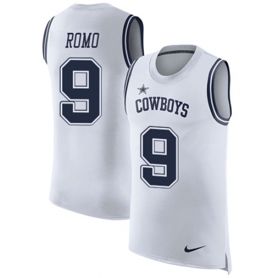 Home>NFL>Dallas Cowboys>Tony Romo>Men's Nike Dallas Cowboys #9 Tony Romo Limited White Rush Player Name & Number Tank Top NFL Jersey