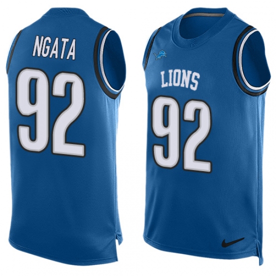 Home>NFL>Detroit Lions>Haloti Ngata>Men's Nike Detroit Lions #92 Haloti Ngata Limited Light Blue Player Name & Number Tank Top NFL Jersey