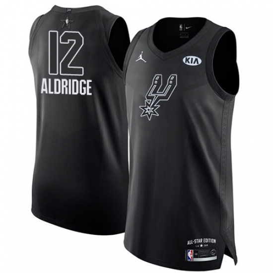 >Men's Nike Jordan San Antonio Spurs #12 LaMarcus Aldridge Authentic Black 2018 All-Star Game NBA Jersey
