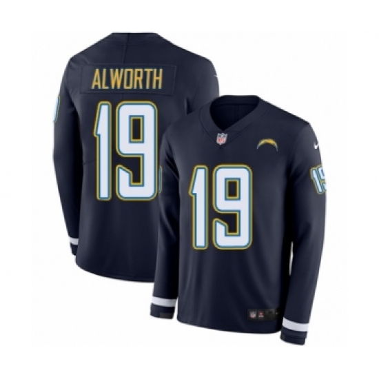 >Men's Nike Los Angeles Chargers #19 Lance Alworth Limited Navy Blue Therma Long Sleeve NFL Jersey