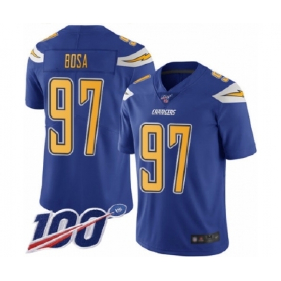 Men's Nike Los Angeles Chargers #97 Joey Bosa Limited Electric Blue Rush Vapor Untouchable 100th Season NFL Jersey