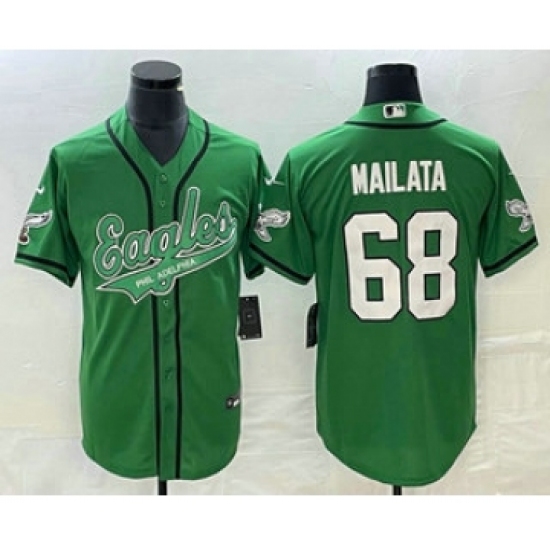 >Men's Nike Philadelphia Eagles #68 Jordan Mailata Green Cool Base Stitched Baseball Jersey