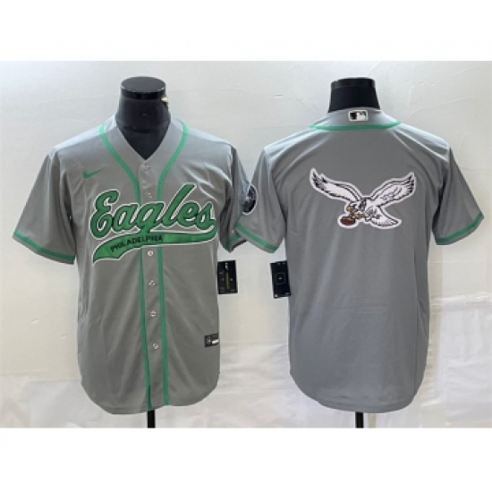 Men's Philadelphia Eagles Grey Team Big Logo With Patch Cool Base Stitched Baseball Jersey