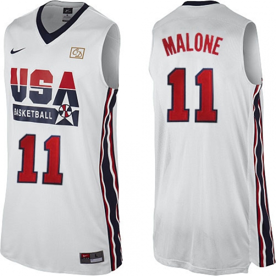 Home>NBA>Team USA>Karl Malone>Men's Nike Team USA #11 Karl Malone Authentic White 2012 Olympic Retro Basketball Jersey