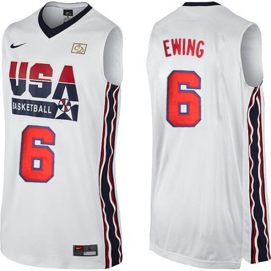 Men's Nike Team USA #6 Patrick Ewing Swingman White 2012 Olympic Retro Basketball Jersey