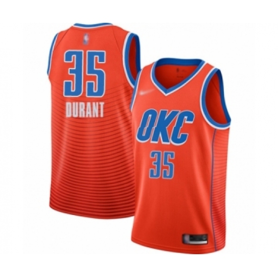 Men's Oklahoma City Thunder #35 Kevin Durant Authentic Orange Finished Basketball Jersey - Statement Edition