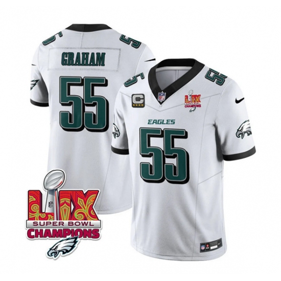 >Men's Philadelphia Eagles #55 Brandon Graham White 2025 Eagles Logo Super Bowl LIX And 4-Star C New F.U.S.E. Vapor Limited Football Stitched Jersey