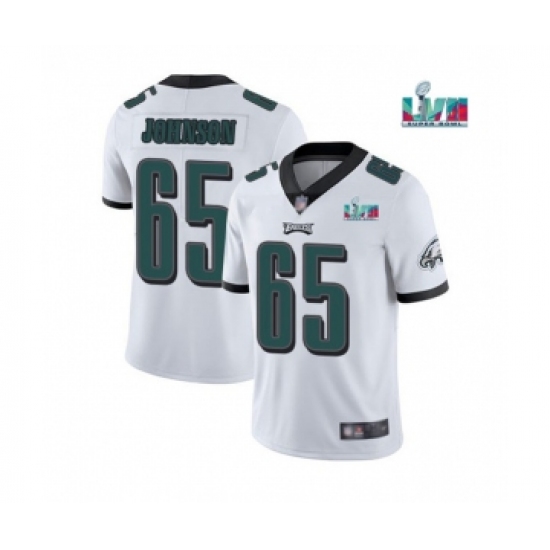 >Men's Philadelphia Eagles #65 Lane Johnson White Super Bowl LVII Patch Vapor Untouchable Limited Stitched Jersey