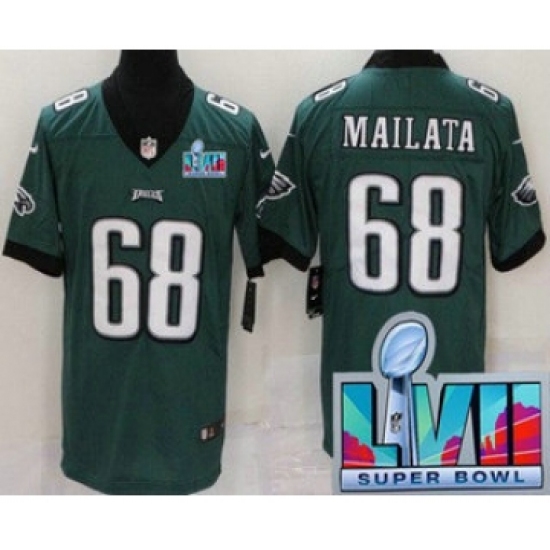 >Men's Philadelphia Eagles #68 Jordan Mailata Limited Green Super Bowl LVII Vapor Jersey