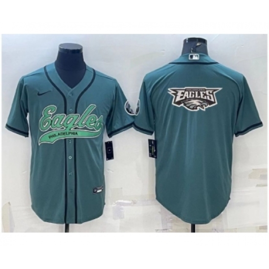 Men's Philadelphia Eagles Green Team Big Logo With Patch Cool Base Stitched Baseball Jersey