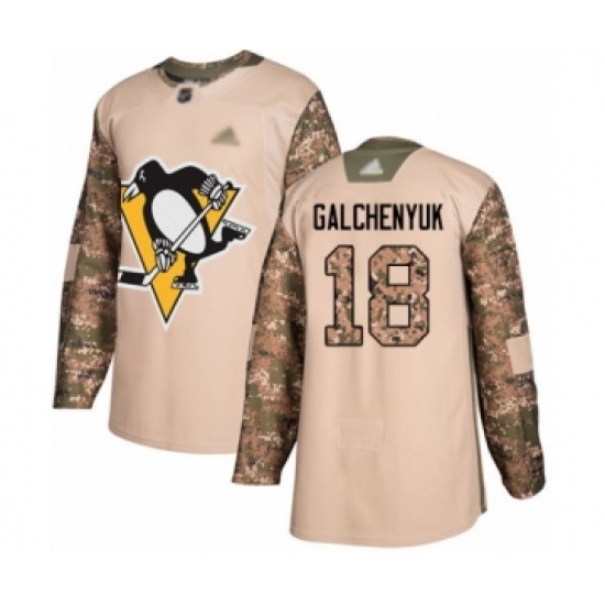 >Men's Pittsburgh Penguins #18 Alex Galchenyuk Authentic Camo Veterans Day Practice Hockey Jersey
