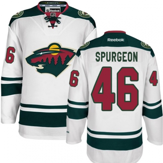 Home>NHL>Minnesota Wild>Jared Spurgeon>Men's Reebok Minnesota Wild #46 Jared Spurgeon Authentic White Away NHL Jersey