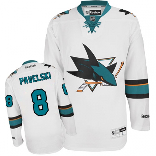 Home>NHL>San Jose Sharks>Joe Pavelski>Men's Reebok San Jose Sharks #8 Joe Pavelski Authentic White Away NHL Jersey