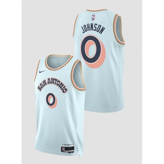 Men's San Antonio Spurs #0 Keldon Johnson Light Blue 2024-25 City Edition Stitched Basketball Jersey