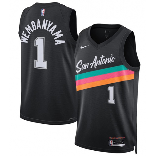 Men's San Antonio Spurs #1 Victor Wembanyama Black Statement Edition Stitched Basketball Jersey