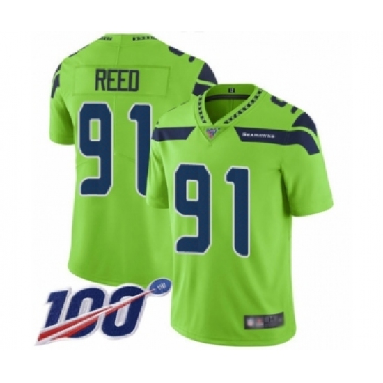 >Men's Seattle Seahawks #91 Jarran Reed Limited Green Rush Vapor Untouchable 100th Season Football Jersey