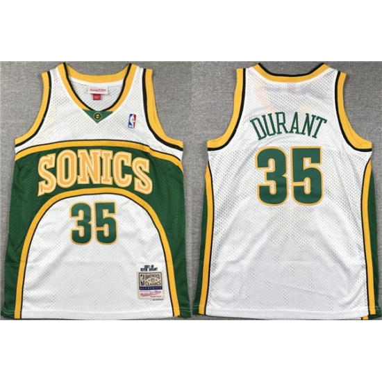 >Men's Seattle SuperSonics #35 Kevin Durant White Mitchell & Ness Hardwood Classics Jersey