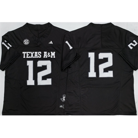 >Men's Texas A&M Aggies Lions #12 Premier Strategy Black 2025 F.U.S.E. Stitched Jersey