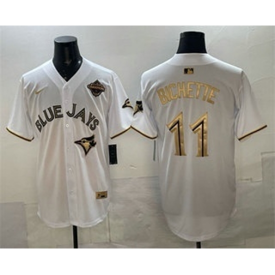 >Men's Toronto Blue Jays #11 Bo Bichette White Gold 2025 American League Champions Limited Stitched Jersey