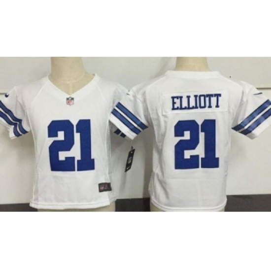 >Toddler Dallas Cowboys #21 Ezekiel Elliott White Road Stitched NFL Nike Game Jersey