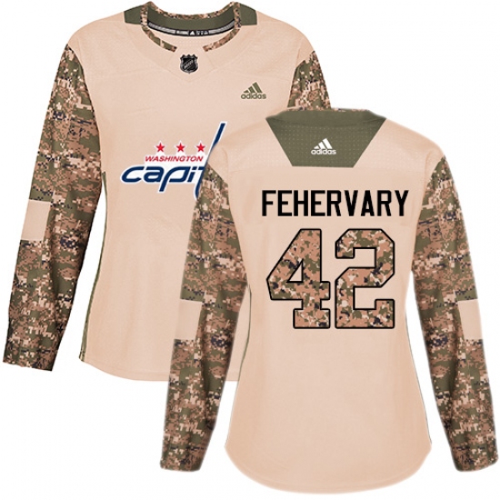 >Women's Adidas Washington Capitals #42 Martin Fehervary Authentic Camo Veterans Day Practice NHL Jersey